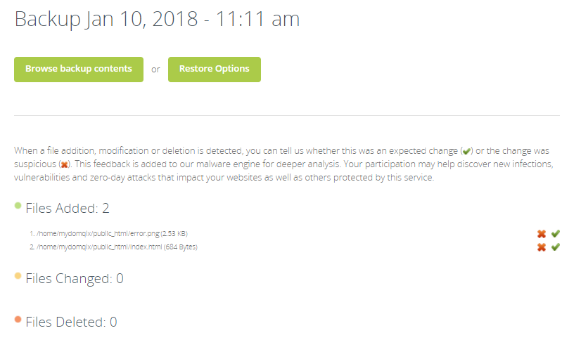Automatic Restore: CodeGuard will automatically restore your website by replacing all of your current content with content from a backup