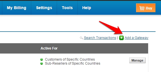 - No Transactions: will disable the gateway for your customers and sub-resellers.